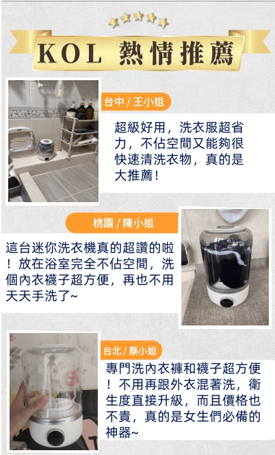 5分鐘前玉如阿姨獨家推出TECO迷你洗衣機,一鍵啟動解放雙手含銀離子持久抑菌,小巧機身功能齊全整機防水防潮防濕 - 內衣內褲分開洗 限時特惠 二入組NT$1990