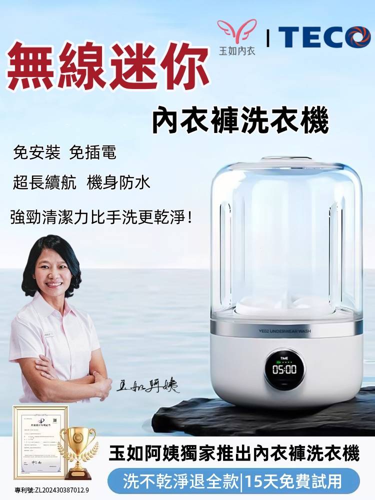 2分鐘前玉如阿姨獨家推出TECO迷你洗衣機,一鍵啟動解放雙手含銀離子持久抑菌,小巧機身功能齊全整機防水防潮防濕 - 內衣內褲分開洗 限時特惠 二入組NT$1990